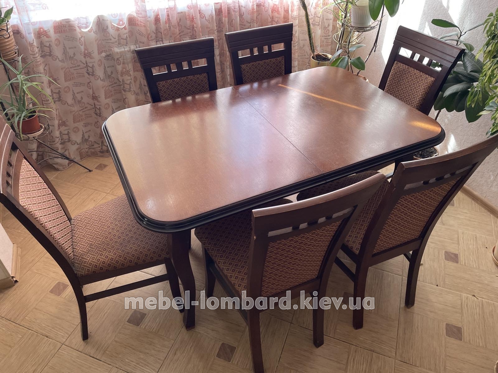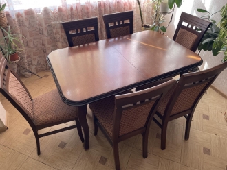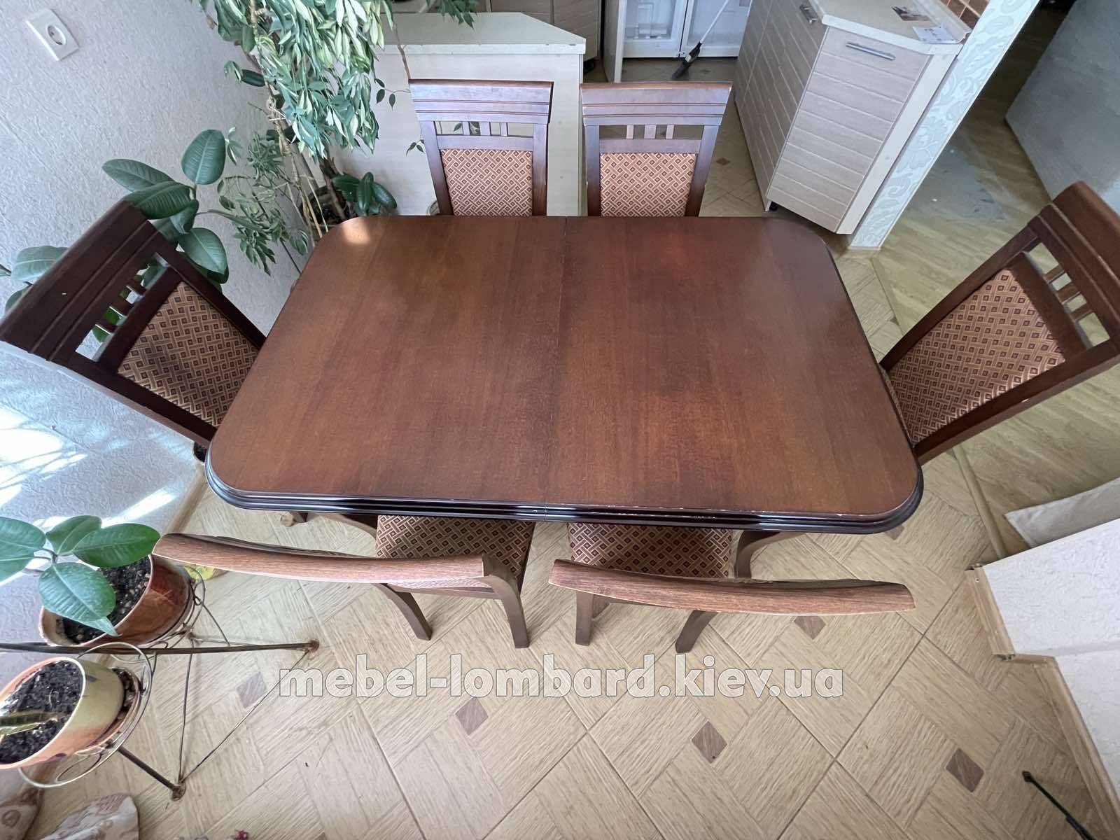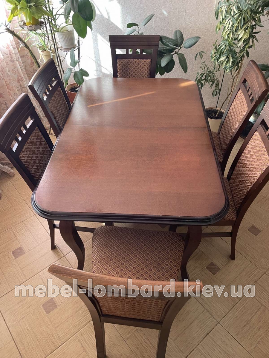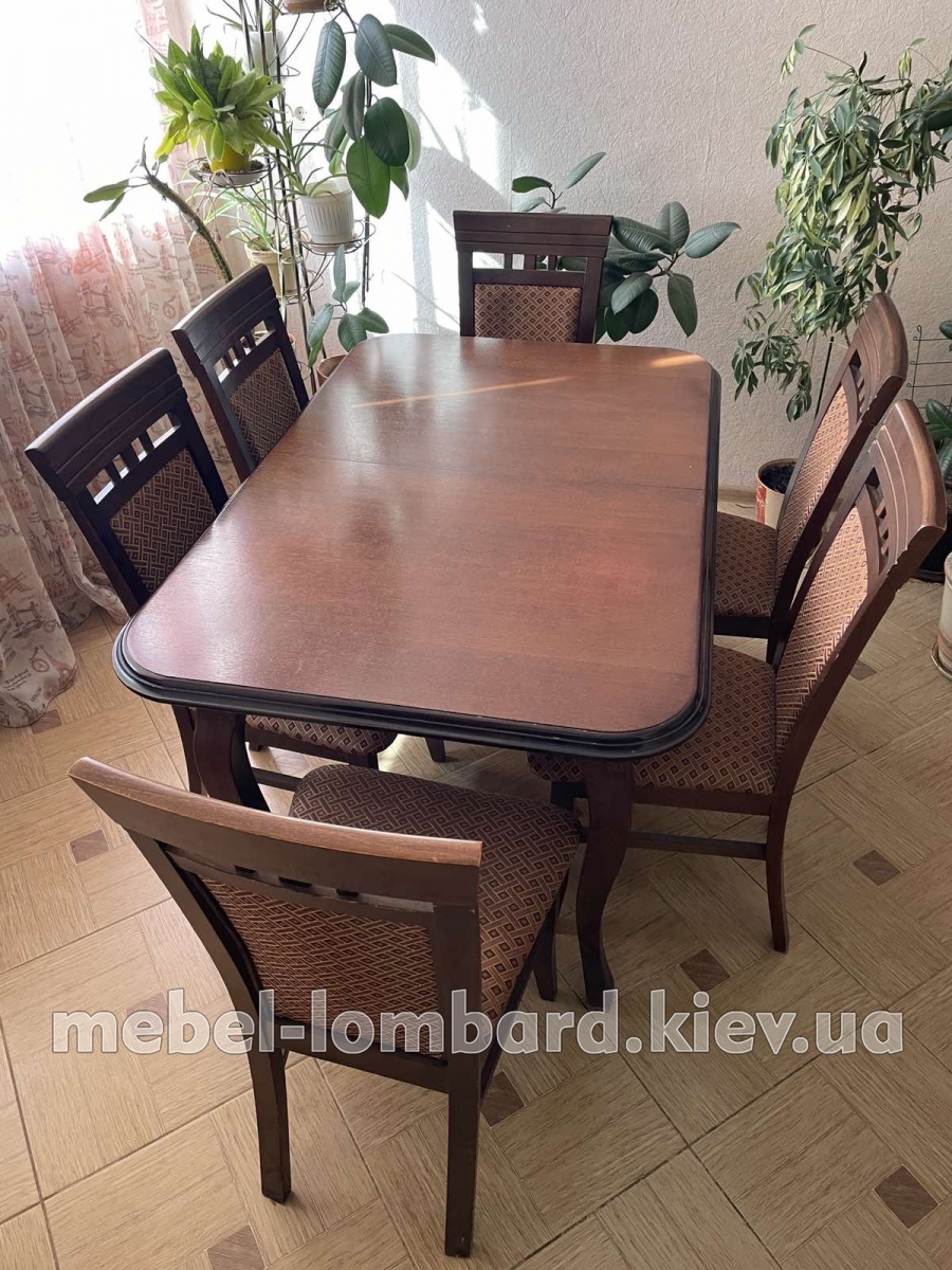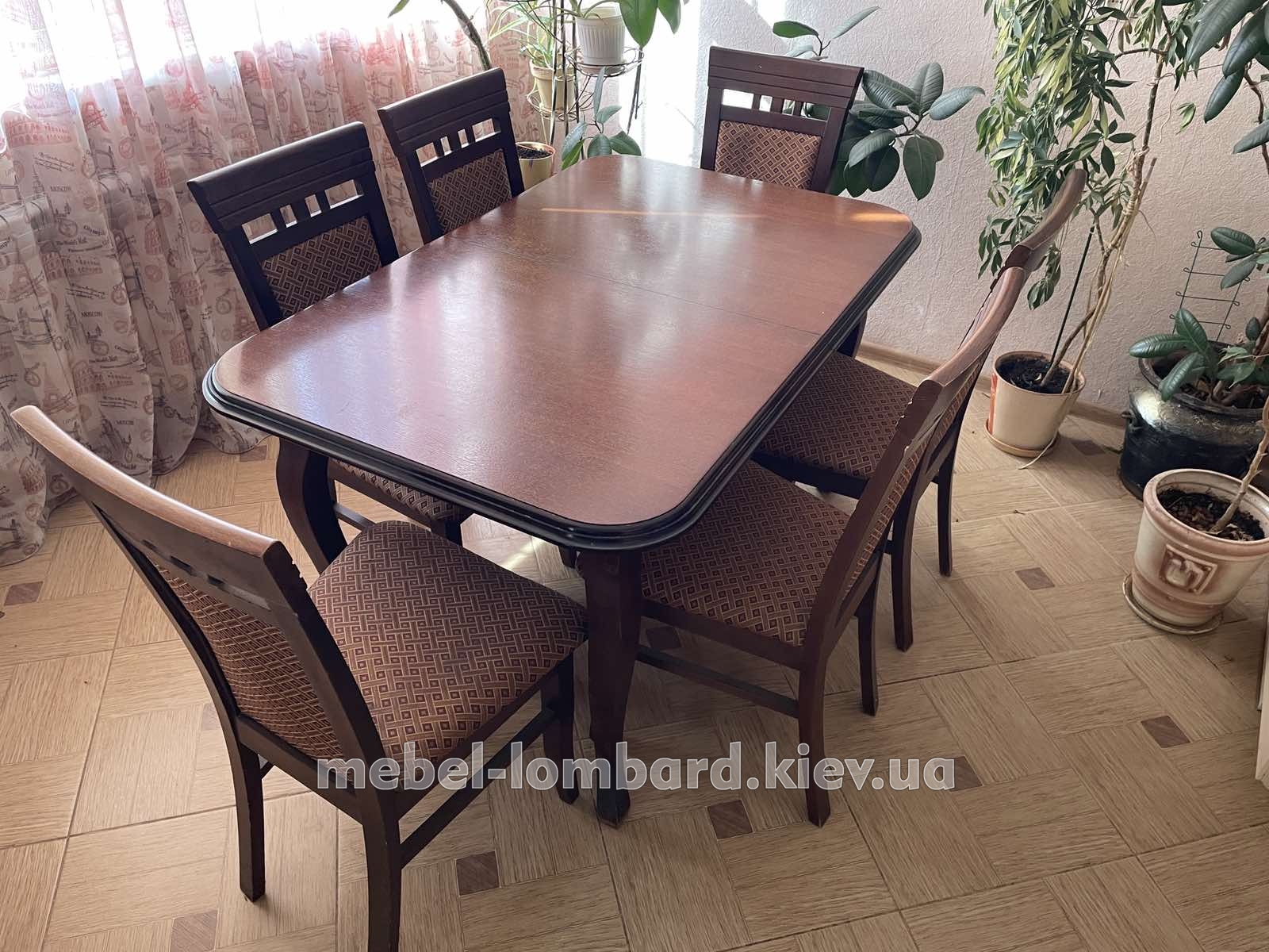 Стол раскладной + 6 стульев "Орех" бу