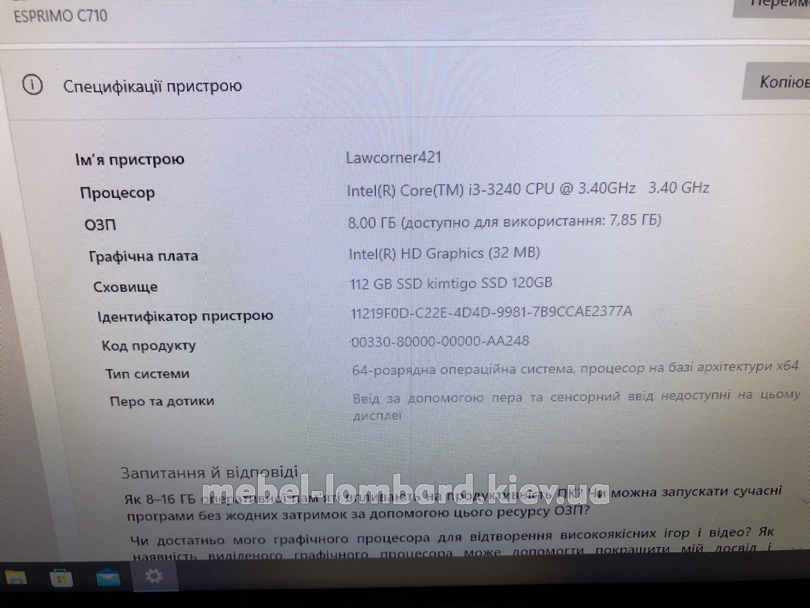 ПК «Fujitsu ESPRIMO С710», i3-3240, 3,40 МГц, 8 Гб, 120 SSD, бу